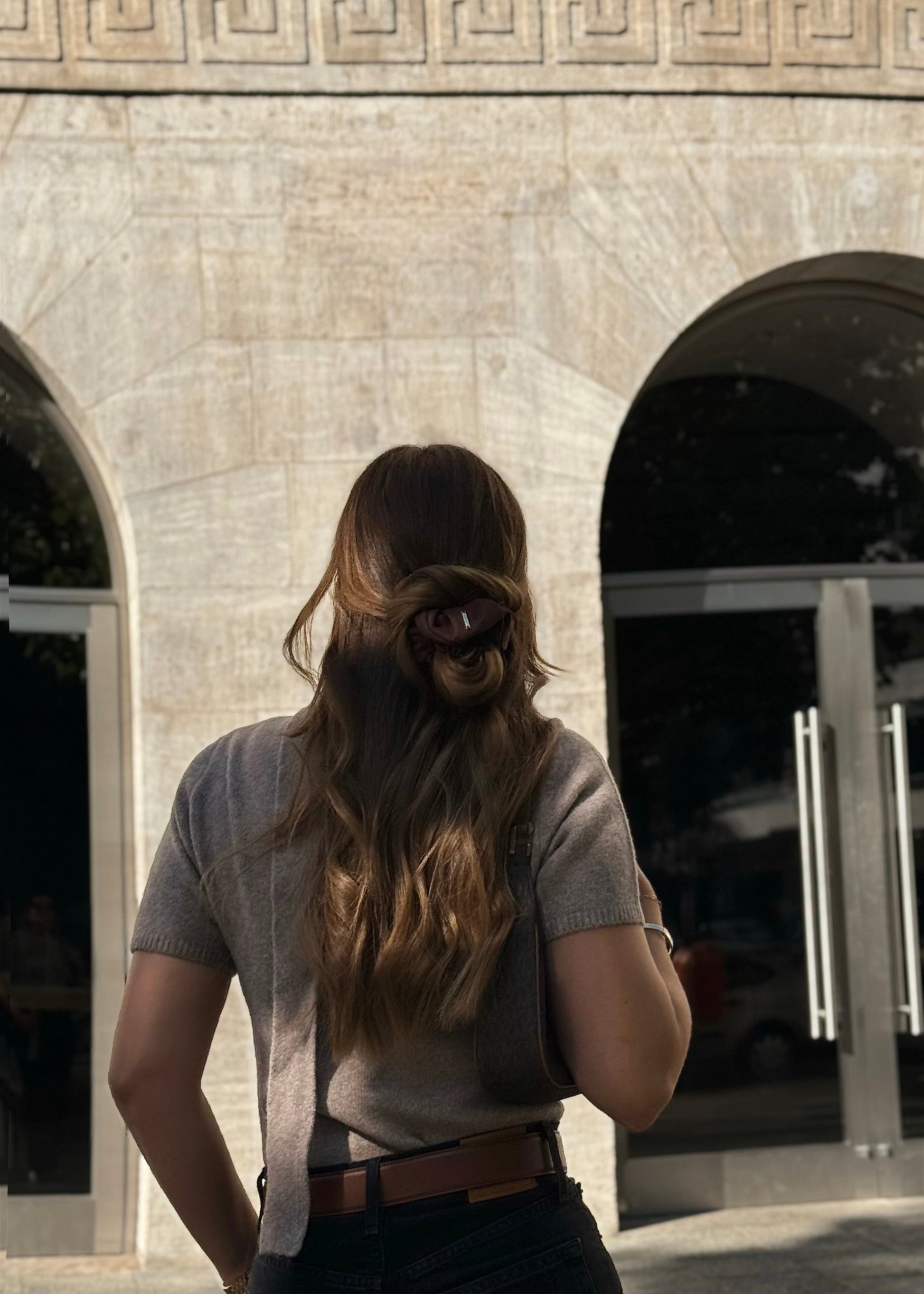 Das Velour Chocolate Scrunchie schmiegt sich sanft ins Haar, verhindert unangenehmes Ziehen und verleiht jeder Frisur eine edle, warme Note. Ein Must-have für alle, die zeitlose Eleganz mit weichem Komfort verbinden möchten.